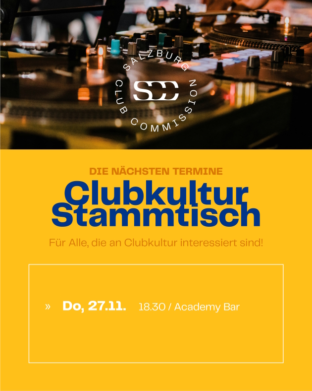 Lockere Vernetzung für Clubkultur in Salzburg? Komm zum Stammtisch in die Academy Bar!